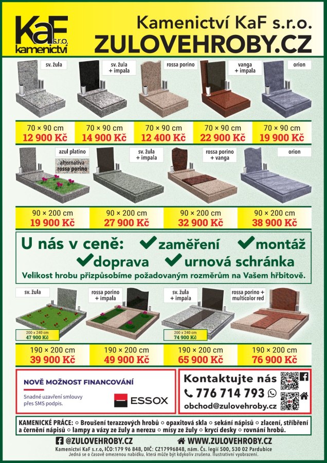 Vždy ve čtvrtek 2. 4. a 9. 4. v 10:30 – 10:50 bude na hřbitově v Dohalicích obchodní zástupce přijímat objednávky k opravám hrobů. Firma poskytuje veškeré kamenické práce.